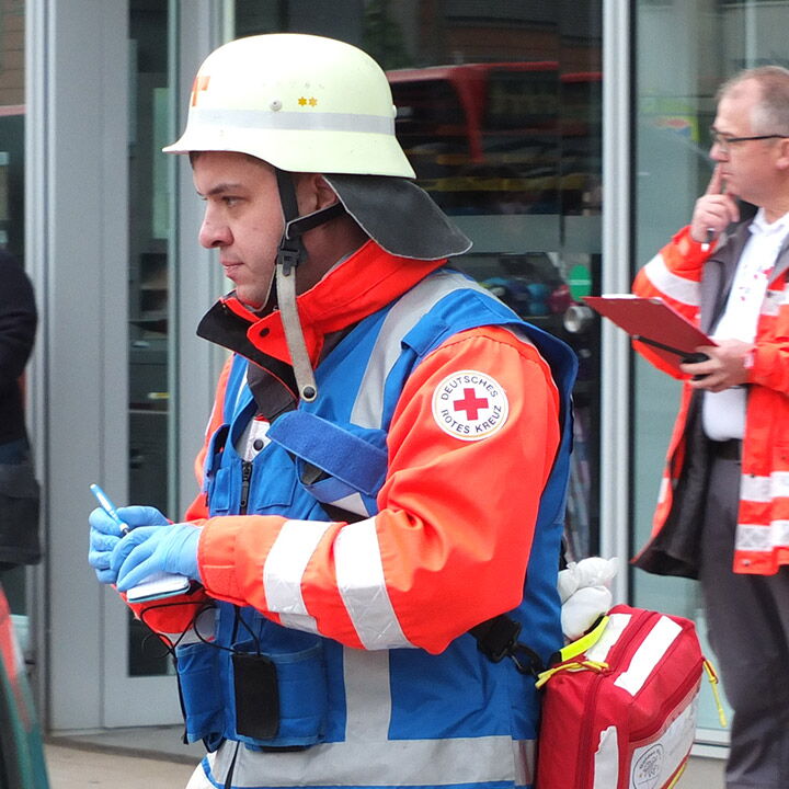 Auch im Bereich Erste Hilfe sind wir aktiv. Ob nebenberuflich im Rettungsdienst, als Führungskraft in der Kreisbereitschaftsleitung oder Ehrenamtlich als Helfer vor Ort und in den DRK Bereitschaften, unsere Mitglieder dienen der Allgemeinheit und unterstützen in der präventiven und aktiven Gefahrenabwehr.