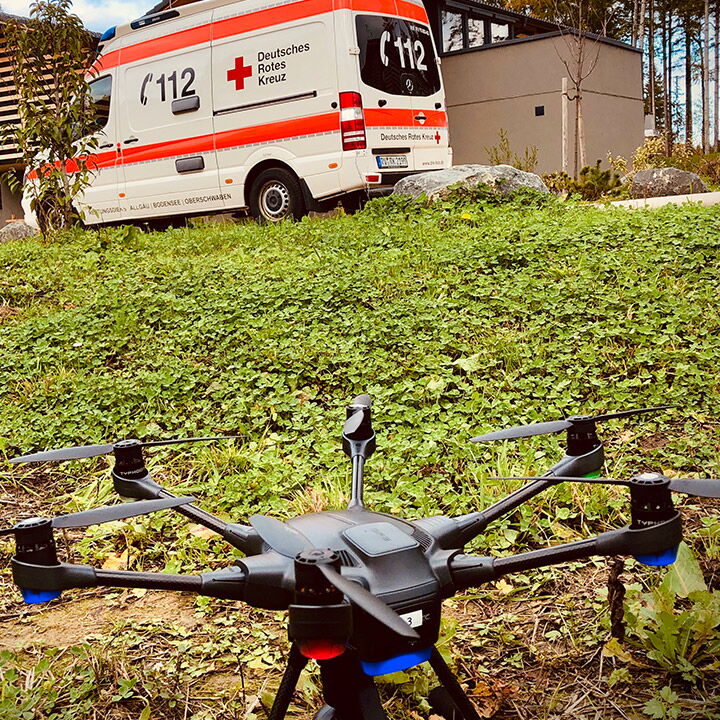 Im Frühjahr 2018 wurde durch unsere Mitarbeiter ein Pilotprojekt zur Unterstützung bei Personensuche mittels Drohne gestartet. Eines der ersten in ganz Baden - Württemberg. Mittlerweile hat die Drohnengruppe des DRK Kreisverbandes Wangen 10 Mitglieder, ein Großteil davon sind unsere Mitarbeiter, und ist in den Kreisen Ravensburg, Biberach und Bodensee regelmäßig im Einsatz.